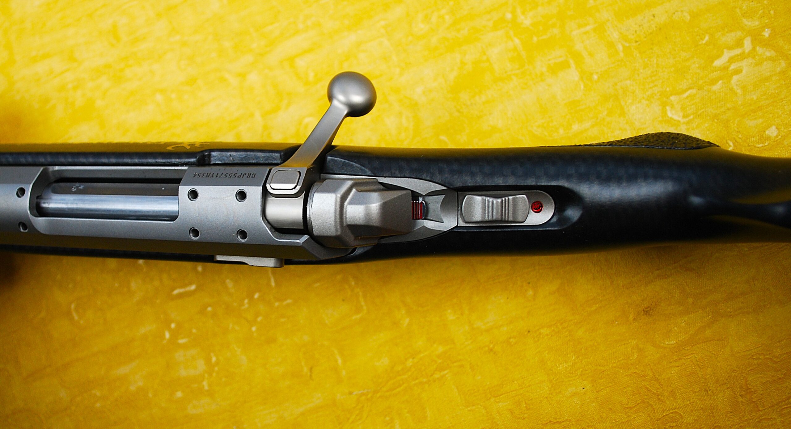 The Bolt features a built in Cocking Indicator, easily seen, even with the gun in the shoulder. At the top of the Bolt Handle there is a small oblong ‘button’. (See Advert Images). When the safety is applied (ON / NO FIRE position) the bolt Locks in its closed position. This oblong peg protrudes indication the bolt is cocked but safe / unable to operate. As the Tang Safety is moved to the FIRE / OFF SAFE position this peg drops down to finish flush. Also a secondary indicating Red ‘lug’ showing to the rear / bottom of the bolt too. THE BUTTON also allows the bolt to be opened when the safety is applied. Simply push it down and the bolt handle will open. As such, allowing 100% SAFE unloading of the chamber.