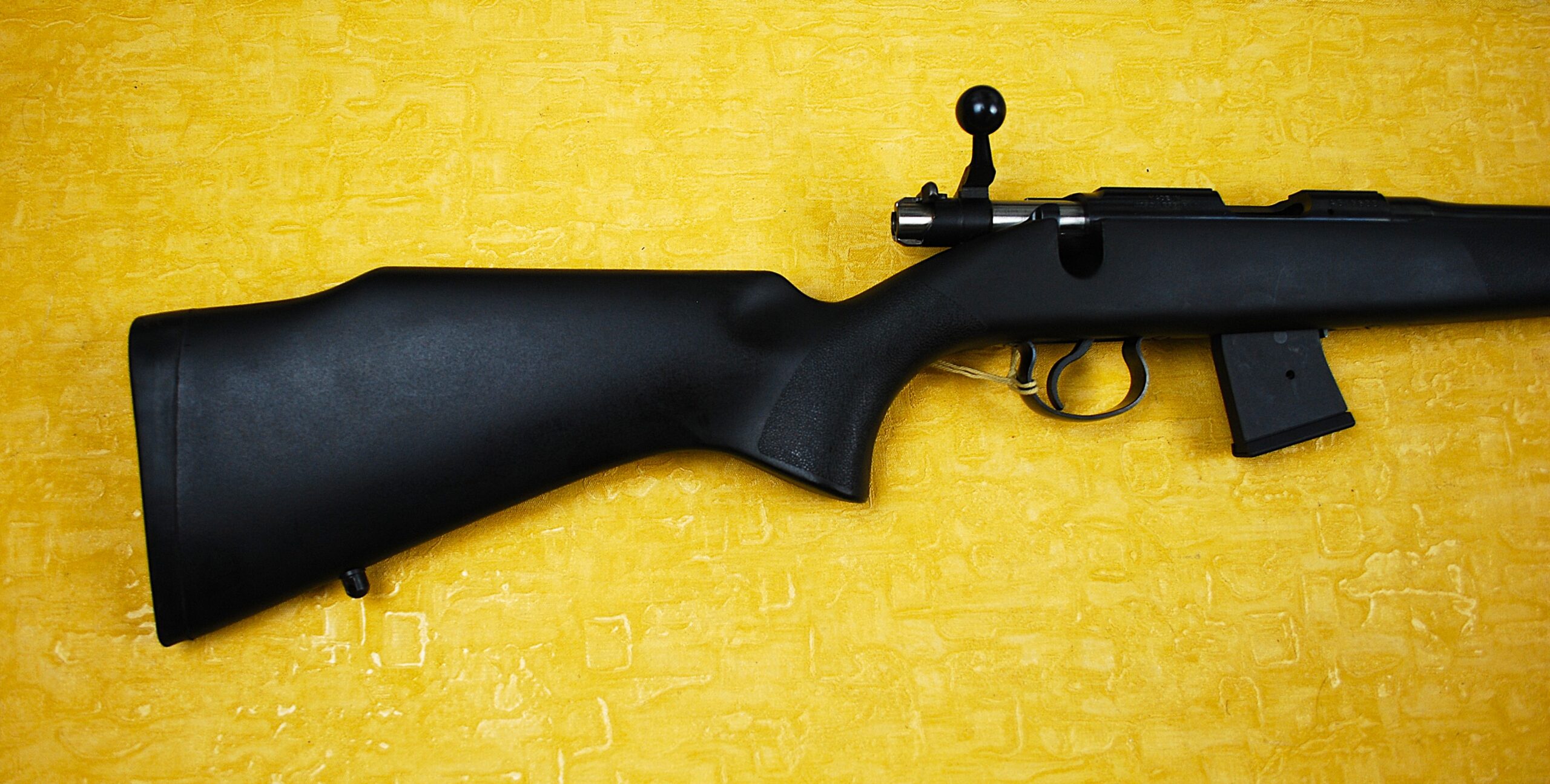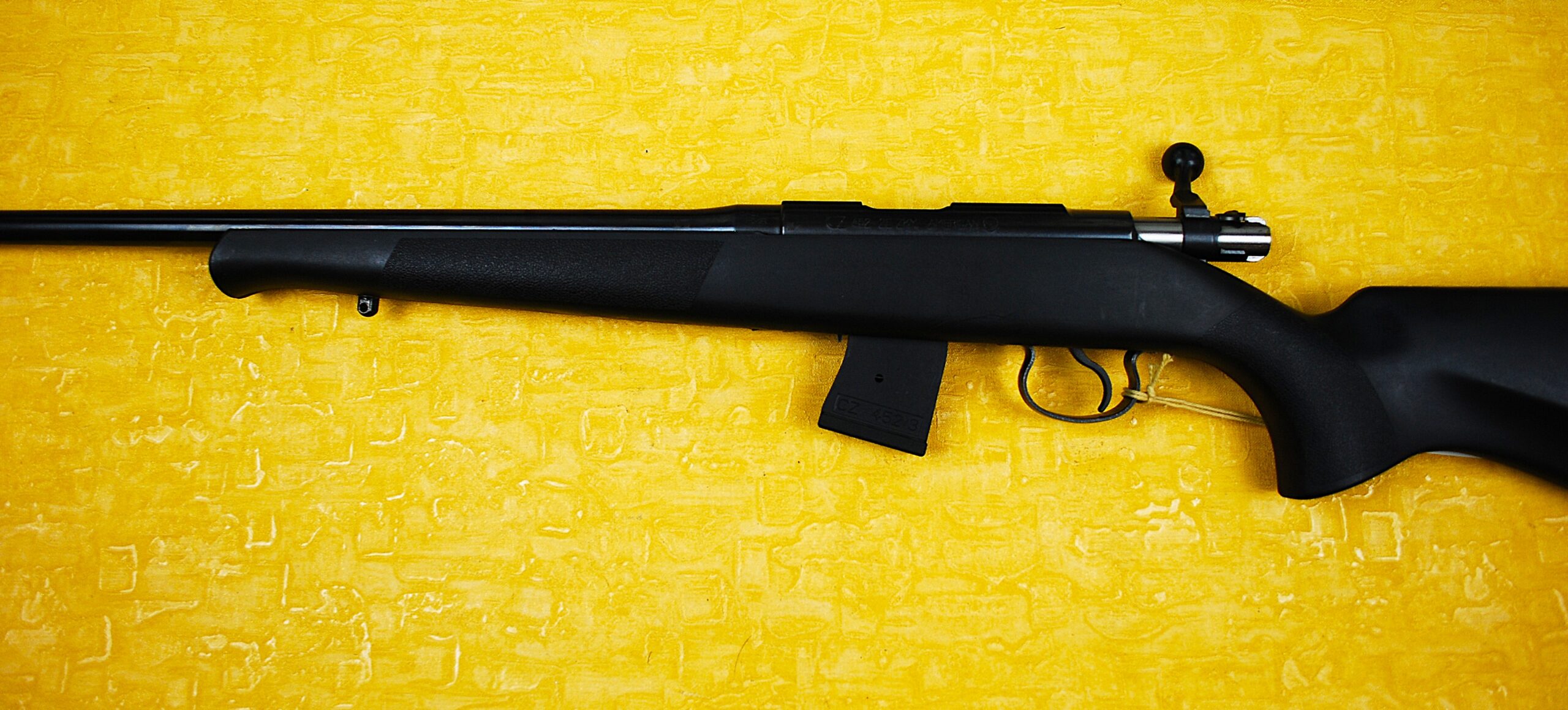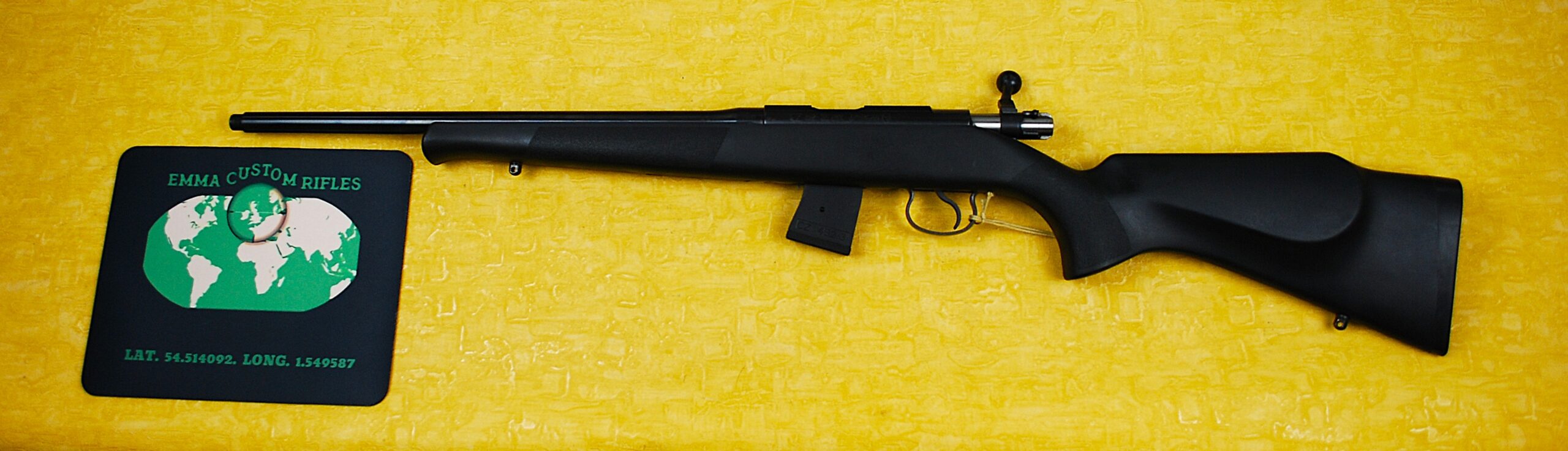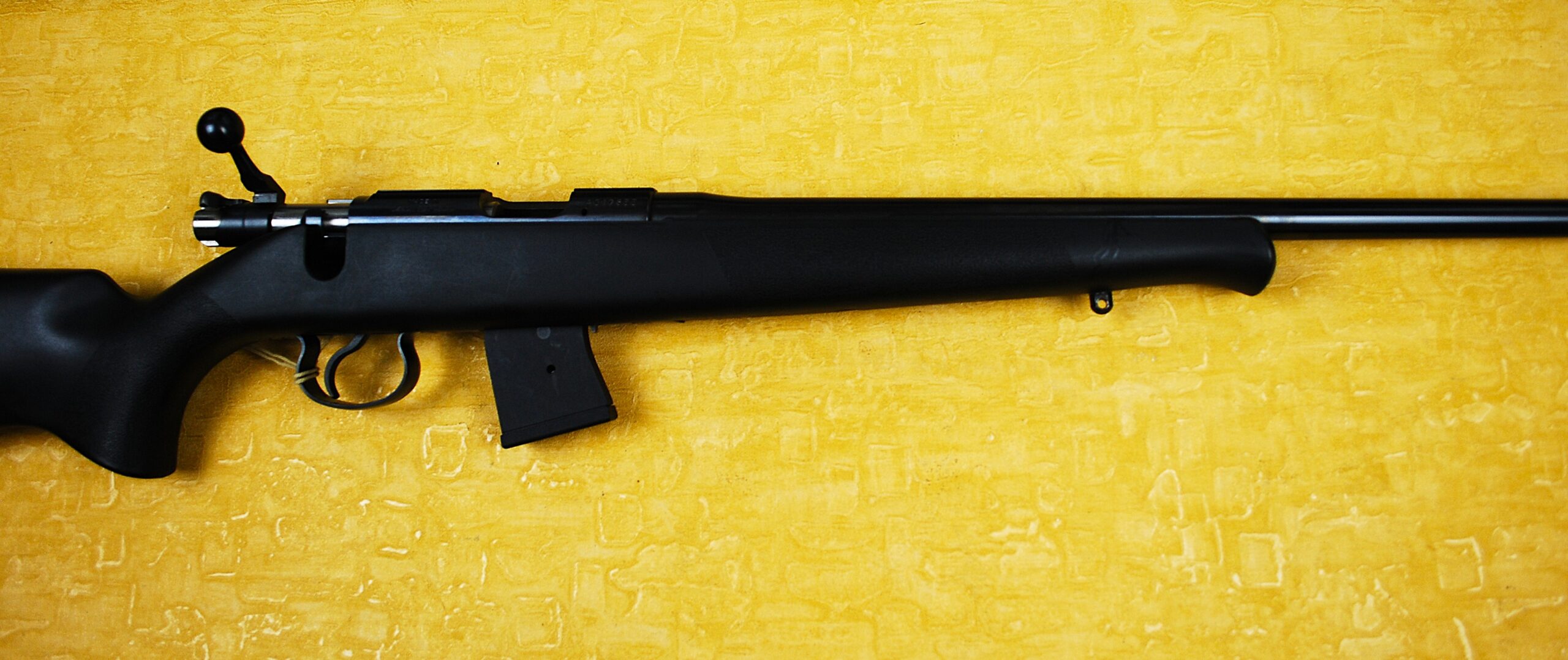 Model 452-2E ZKM ‘Silhouette’ American .17 HMR Bolt Action Rifle. All Black finish to the metalwork plus Black Synthetic Stock. Hence the model’s name.