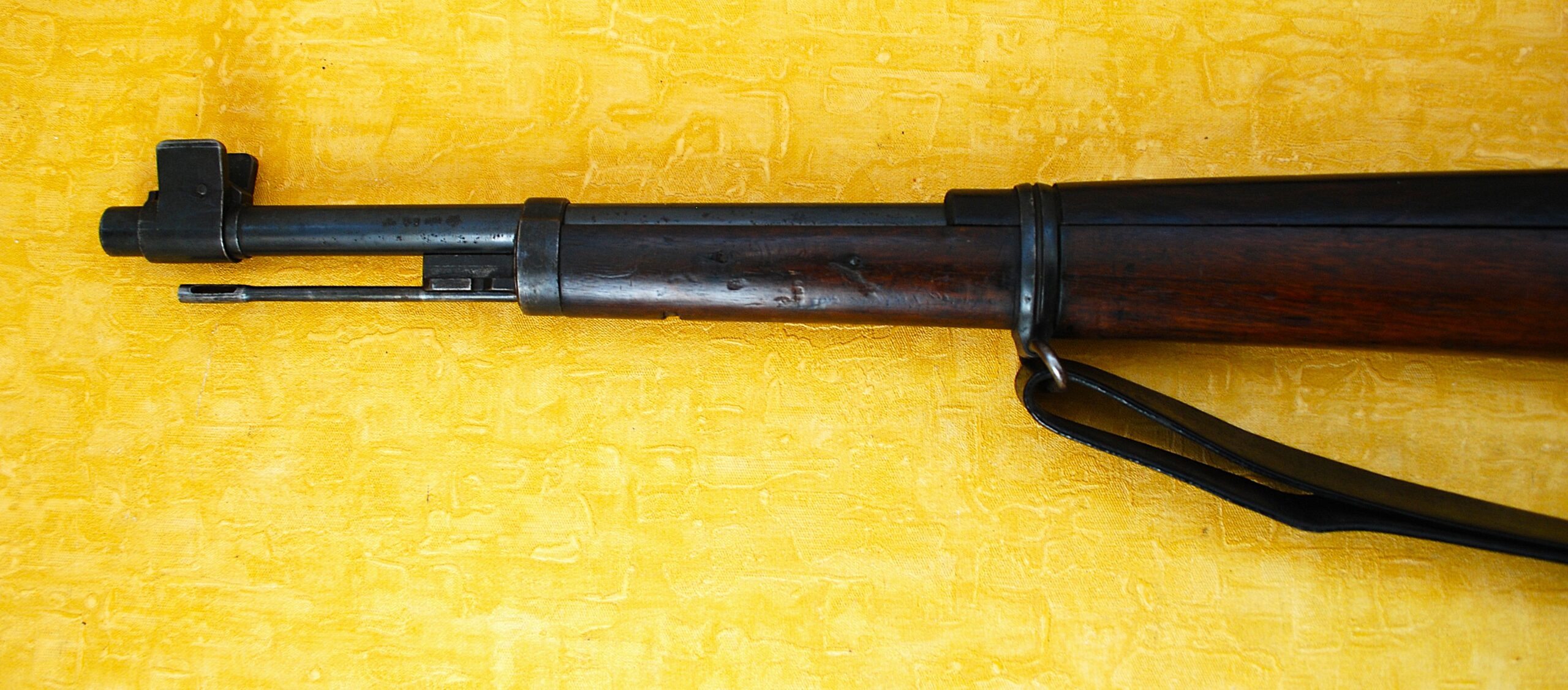 Standard Military / unaltered original specification and all fully authentic. 23 5/8” (600mm) Barrel set to a Stock at only 12 ¼” (310mm). Overall, the rifle measures to 42 7/8” (1087mm) and tips scales at 8 lb 2oz (3.685 Kg) as pictured.