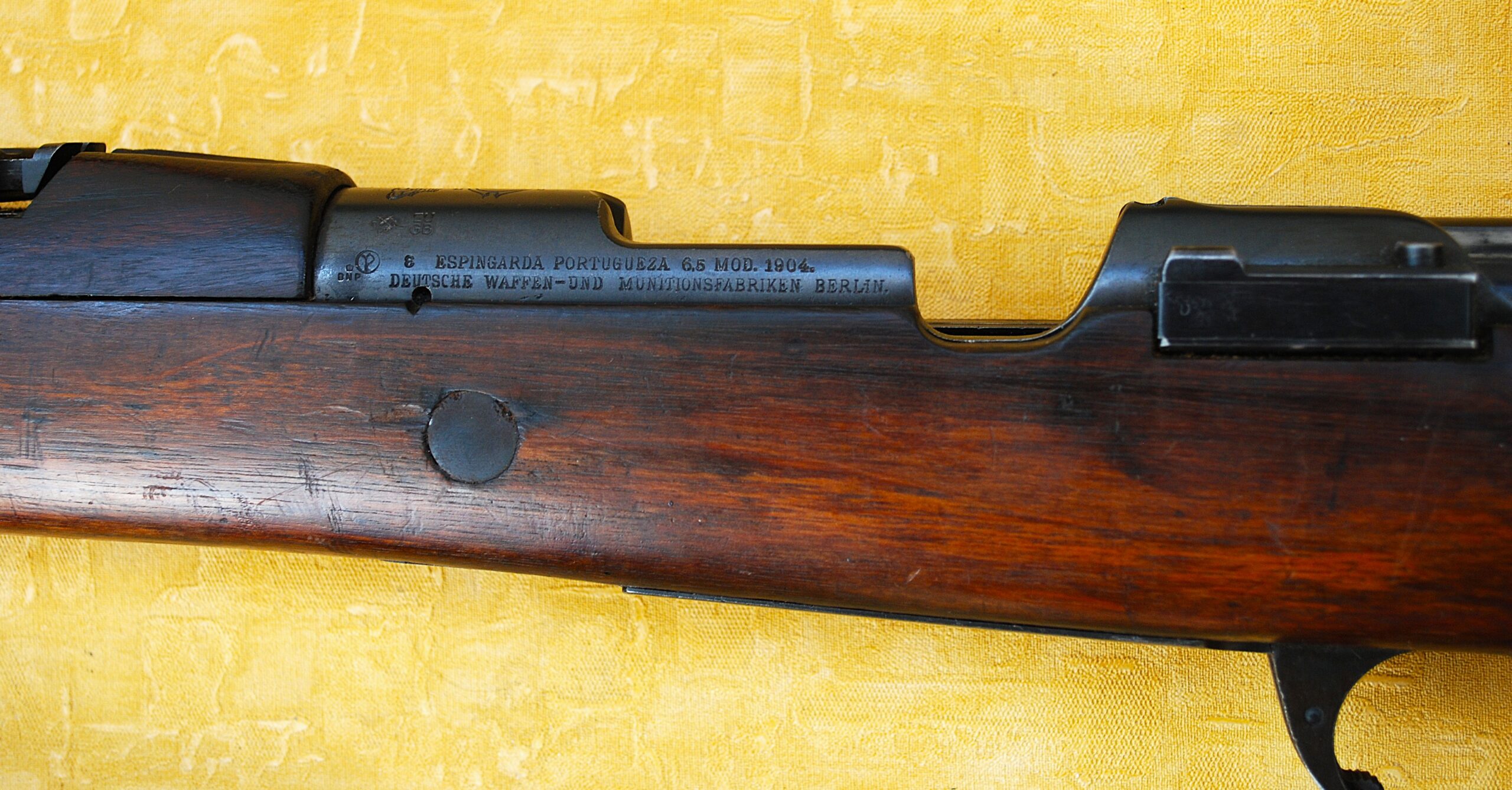 Detailed as a Model 1904 and the Action Fully Stamped as follows. ESPINGARDA PORTUGUEZA 6.5 MODEL 1904. Then DEUTSCHE WAFFEN-UND MUNITIONS FABRIKAN BERLIN. To the Top of the Front Action Ring a Crown and ‘I C’.