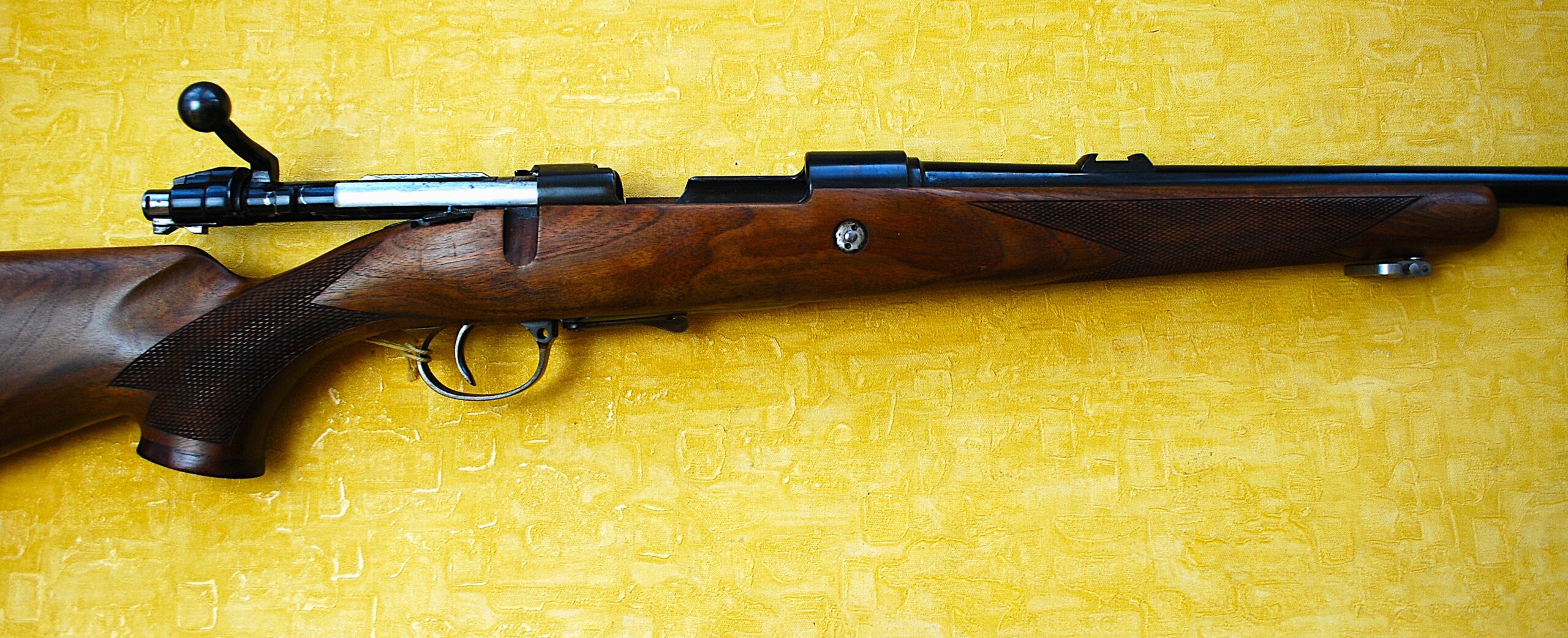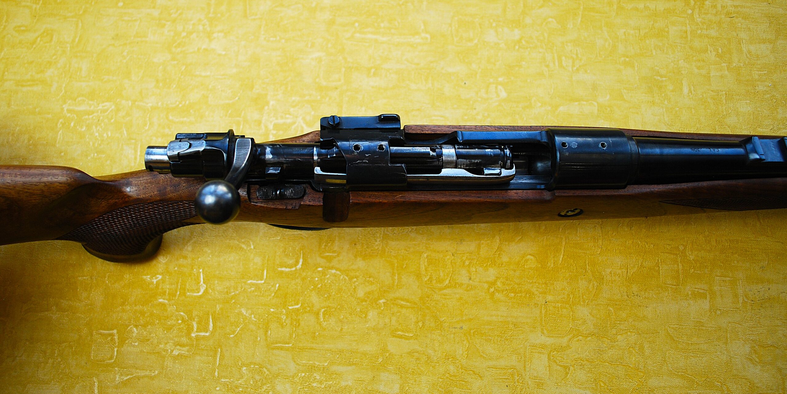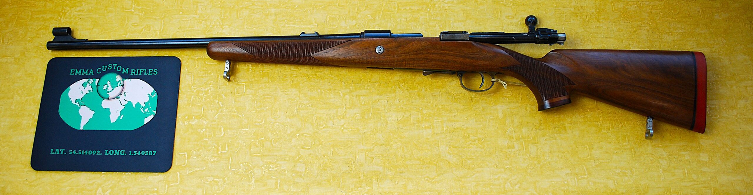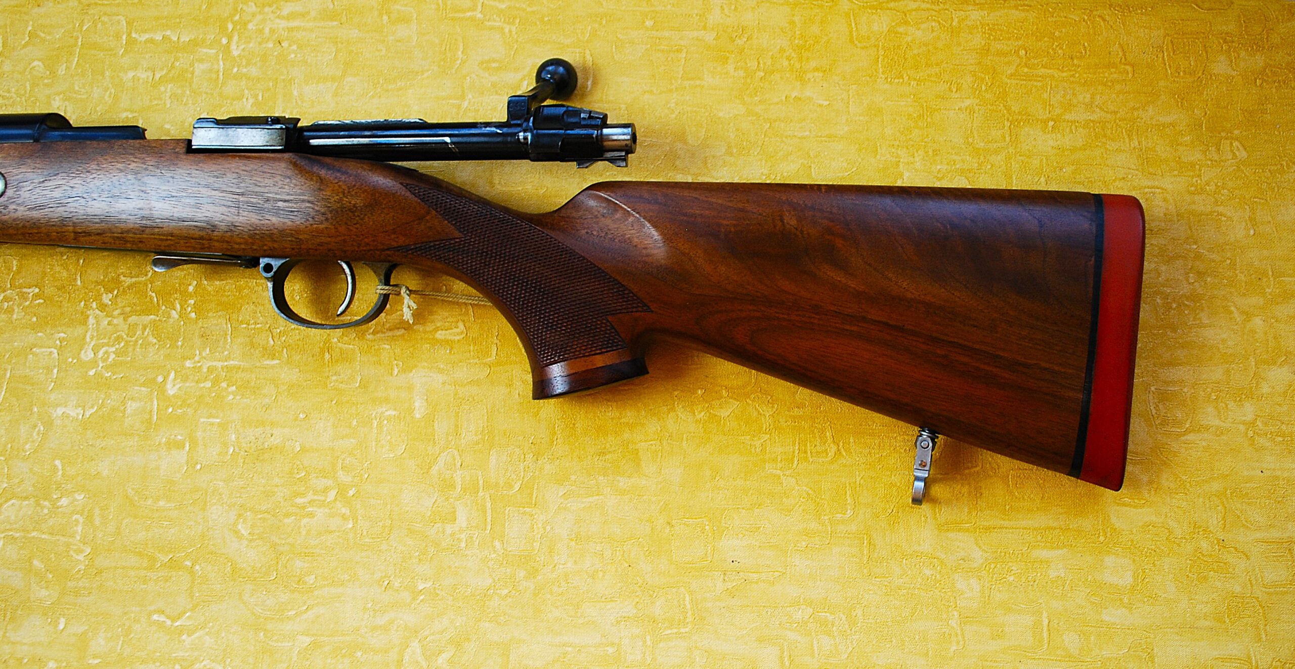 1/ This is built on an Original Mauser 98 Military Action. It still features the usual ‘thumb cut out’ to the left side. Also, the speed loading ‘gate’ / recess to the rear action ring that accepts original clip loaders.