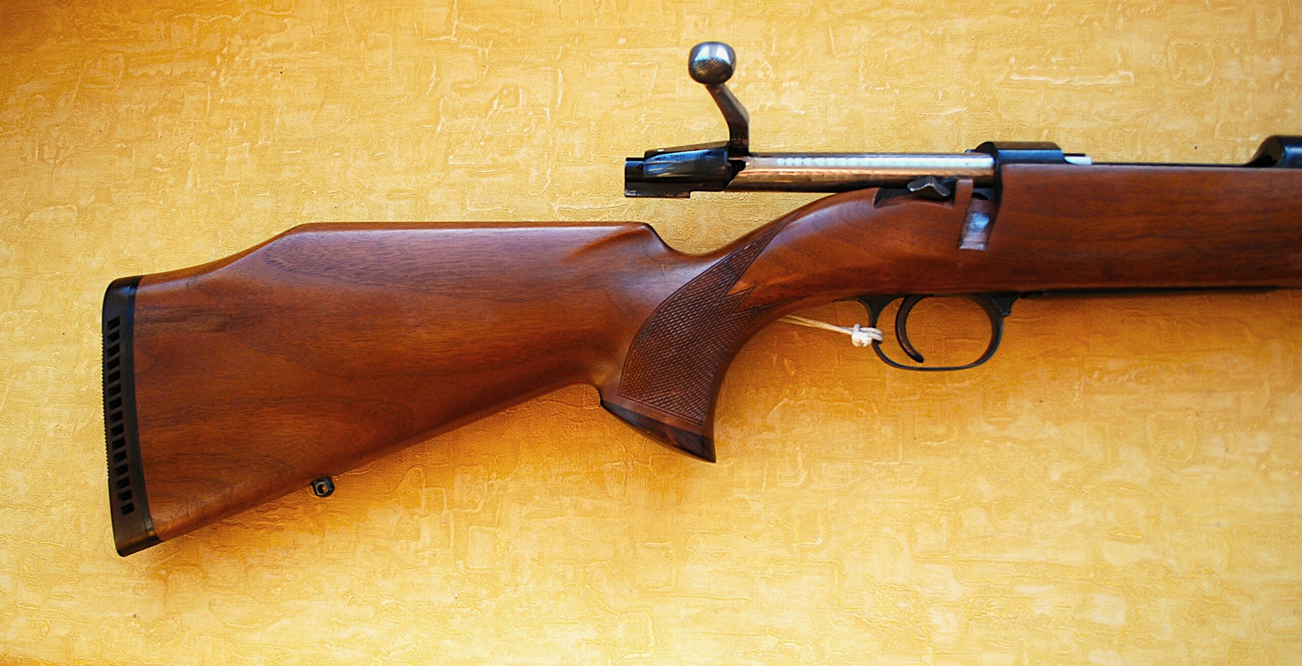 This is in fine condition with little sign of much use at all. Rosewood forend and pistol grip tips and also retaining the adjustable flip up open rear sight. Original Jewelled Bolt and standard trigger.