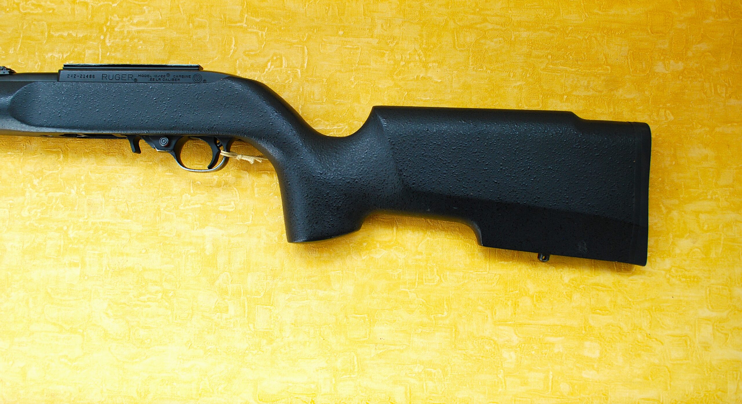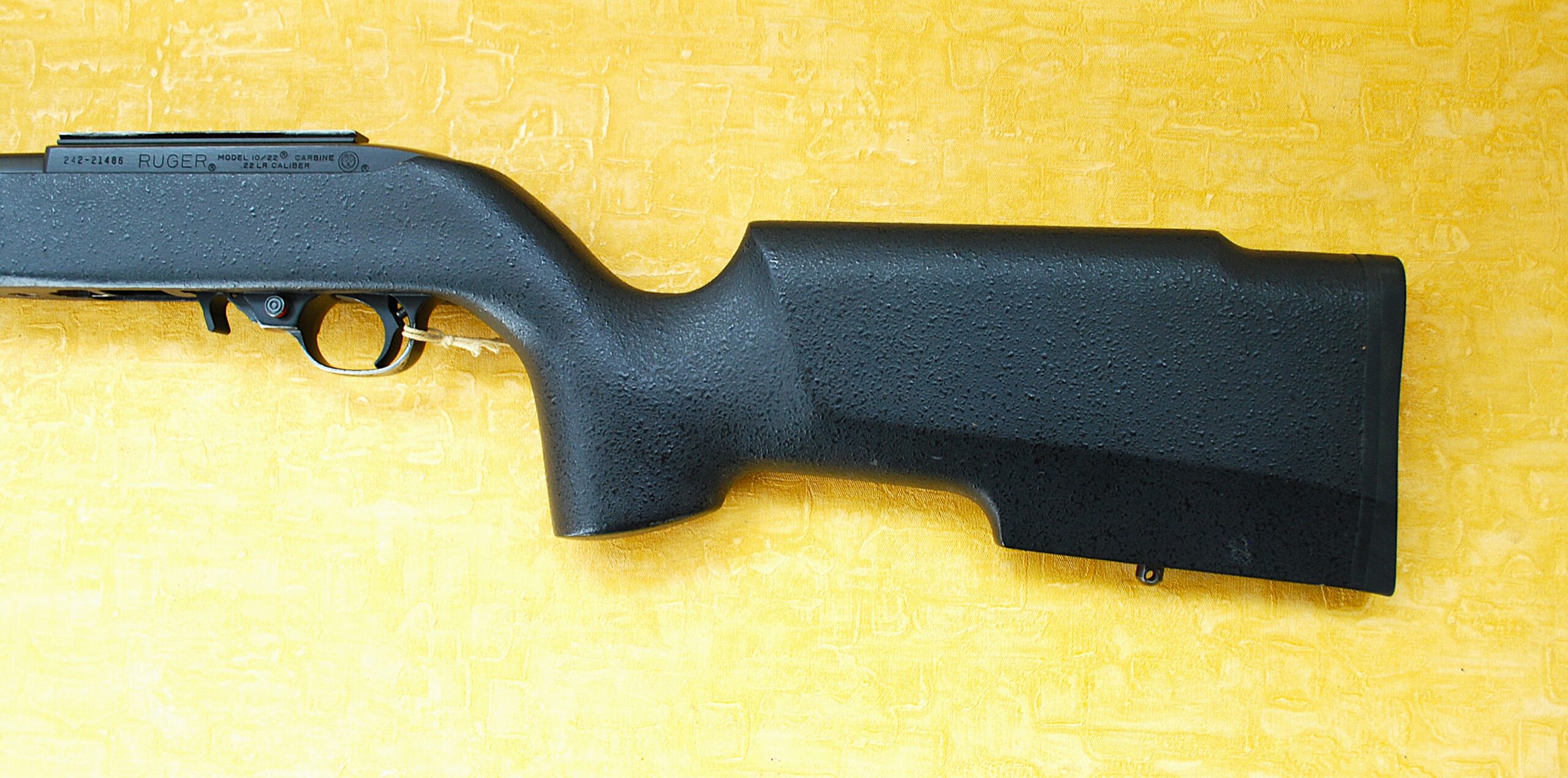 Currently fitted to a Boyd After-Market Up-Grade Stock. The Boyd 1022-PV-BT. As in Ruger 10-22 Pro-Varmint Beaver Tail. Fully Ambidextrous format, Black Fleck Textured Finish with DOUBLE Stud fitted Beavertail For-end. Offering separate / independent fitting points for a sling PLUS Bi-Pod. (More than enough of those available too)! Back / Direct on the Manufacturers website these are listed at $189. Given ANYTHING from the US is usually at least DOUBLE and in UK £ Sterling by the time it gets here. At this price the rifle is basically for just about nothing. (If the stock was brand new too).