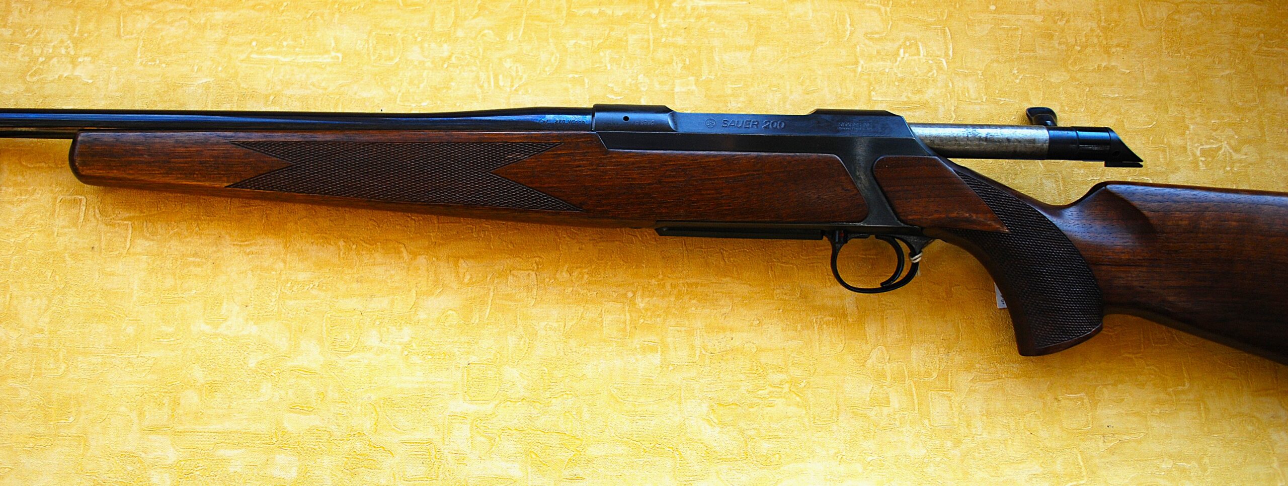 May well be an older Sauer Model 200 Bolt Action Rifle in .270 but still in GREAT condition. This is one of the original versions with the action stamped up to detail Sig Sauer. As with all of these models the barrel is inter-changeable. With a great selection of calibres they are one of the most versatile rifles available. For a Grade one model the woodwork has a pretty reasonably well grained and patterned stock. Pull length measuring up to 14 ½” inc. the rubber recoil pad.